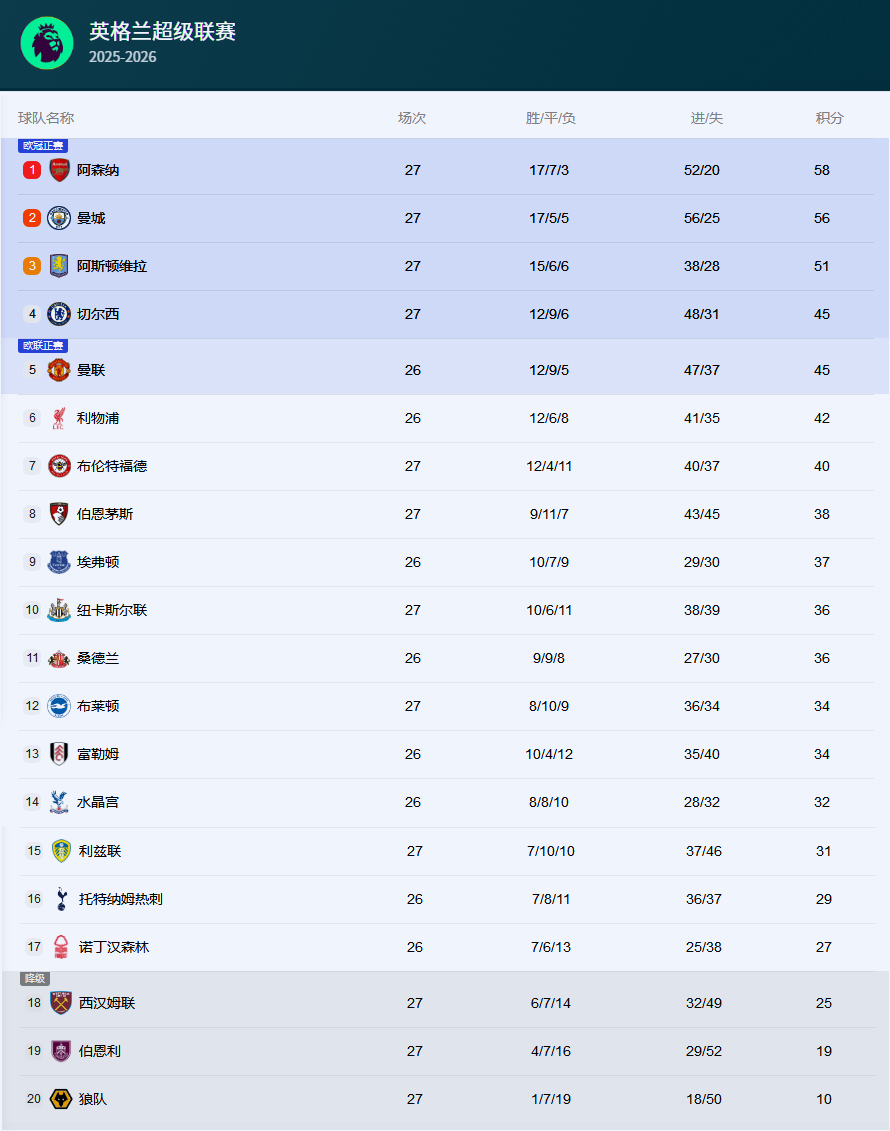 随着本场比赛的结束,曼城在前27轮战罢只落后领头羊阿森纳2个积分,由于双方还有一次直接对话,这也让本赛季的英超冠军争夺战悬念重启。