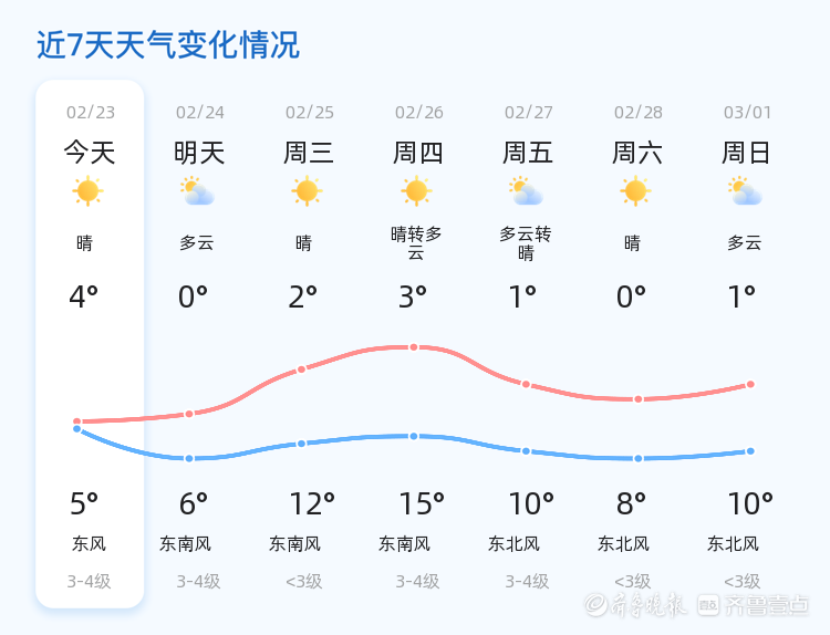东营市今日天气晴转多云,未来三天气温逐步回升