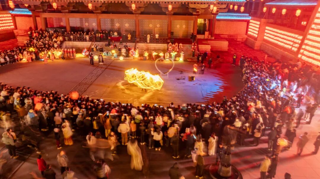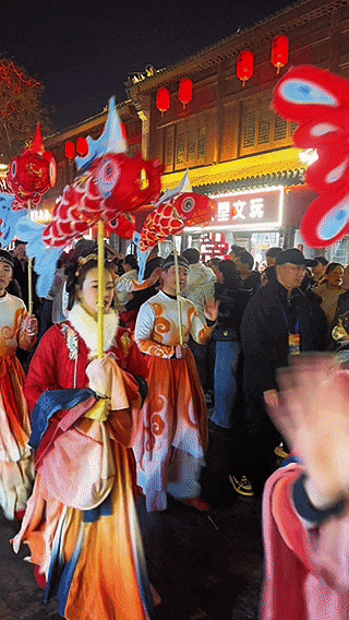 镜头之下,是古韵与今风的完美交响。古城内张灯结彩,喜庆的氛围从街头蔓延到巷尾。这里不仅有传承千年的民俗记忆,更有现代光影的炫酷加持。