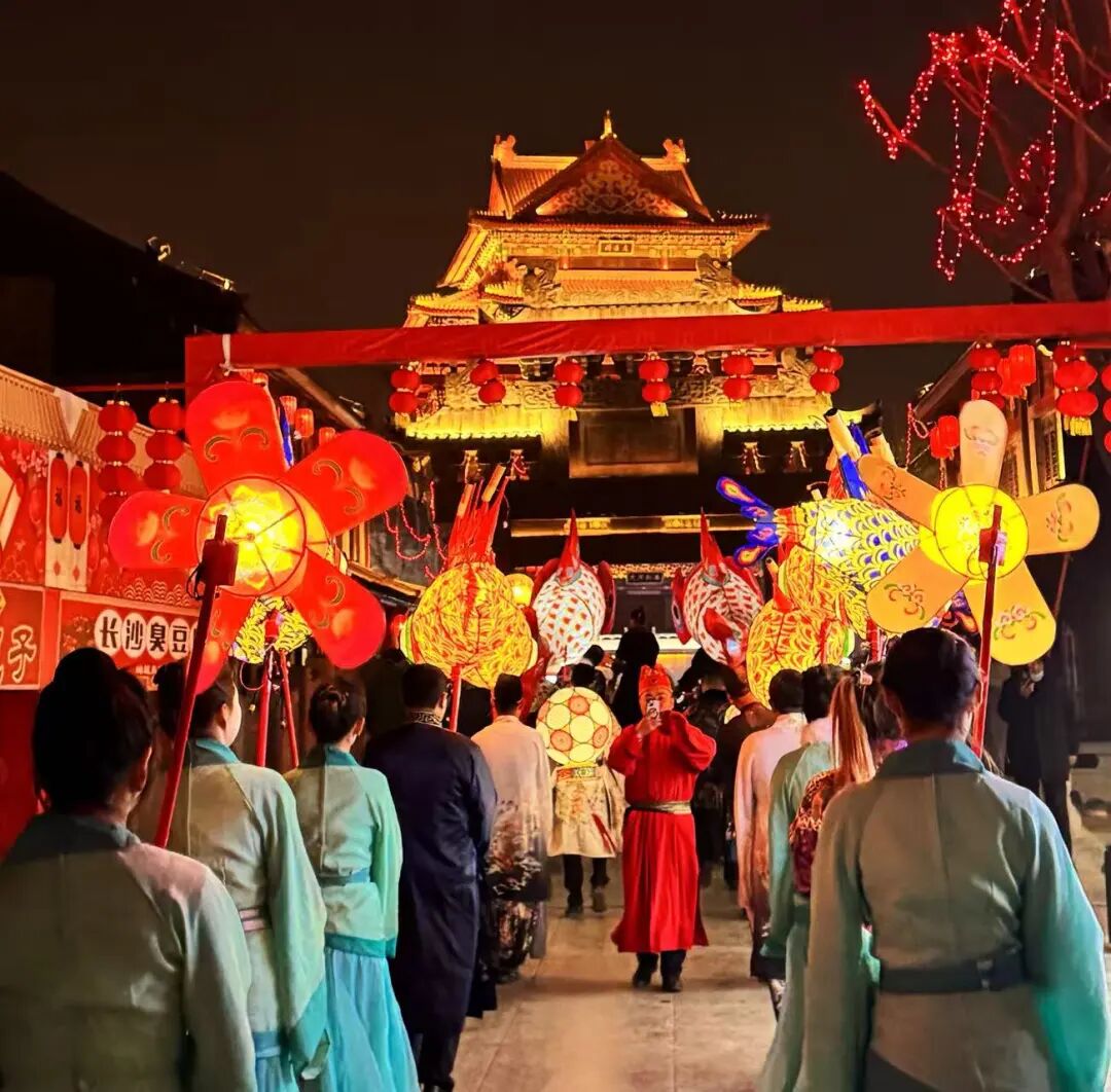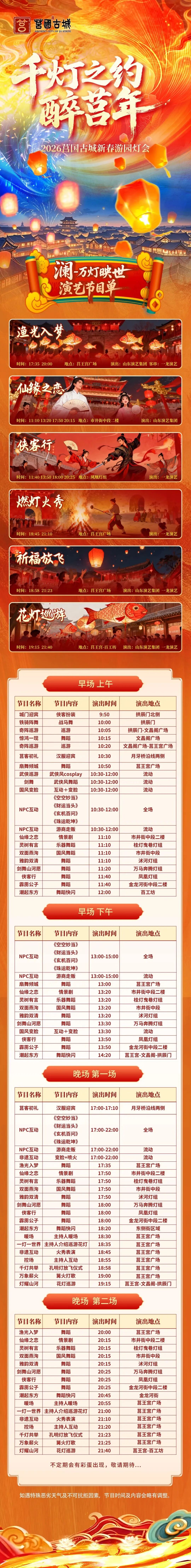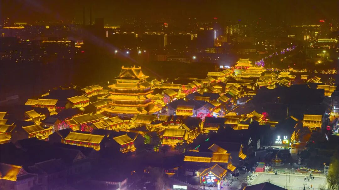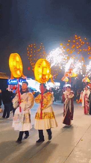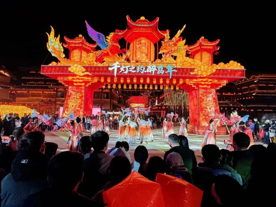 夜幕降临,华灯齐放,十万盏花灯勾勒古城风骨,飞檐斗拱披金挂红,青石板路流光溢彩;街巷之内,人潮涌动,欢声笑语与鼓乐齐鸣,国潮演绎、仙侠市集、篝火打歌、祈福放飞、非遗火秀、花灯巡游轮番上演。目之所及,皆是灯火辉煌、游人如织、古韵新风的新春盛景。