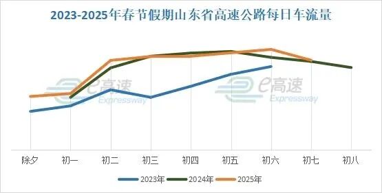2023年至2025年春节期间,每日车流量数据显示,假期结束前次日(2月22日,正月初六)达到春节假期流量峰值,形成集中返程高峰。综合近3年数据规律与2026年出行趋势研判,预计正月初六仍将出现交通流量高峰。